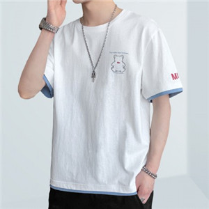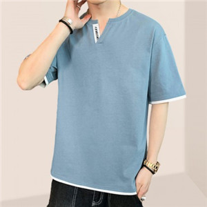 【純棉舒適】2021夏季新款男士V領(lǐng)假兩件百搭透氣短袖T恤