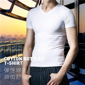 男士簡約純色透氣高彈彈力棉短袖V領T恤