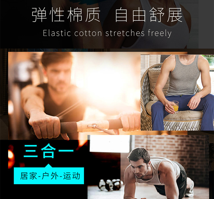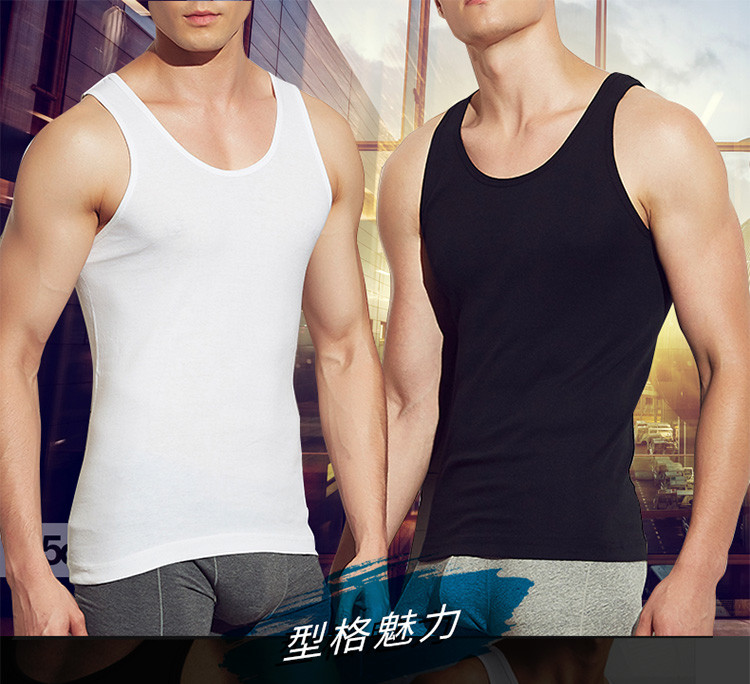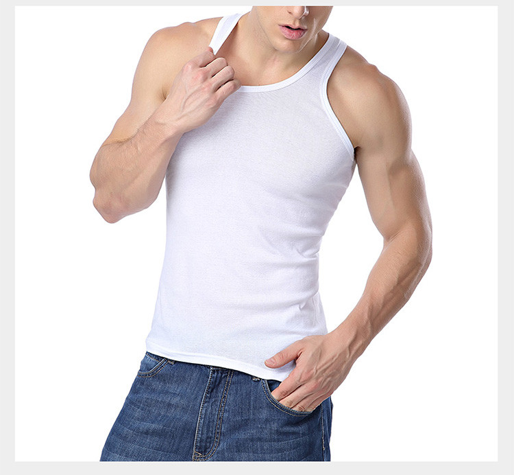 男士純色吸汗運動純棉羅紋圓領背心