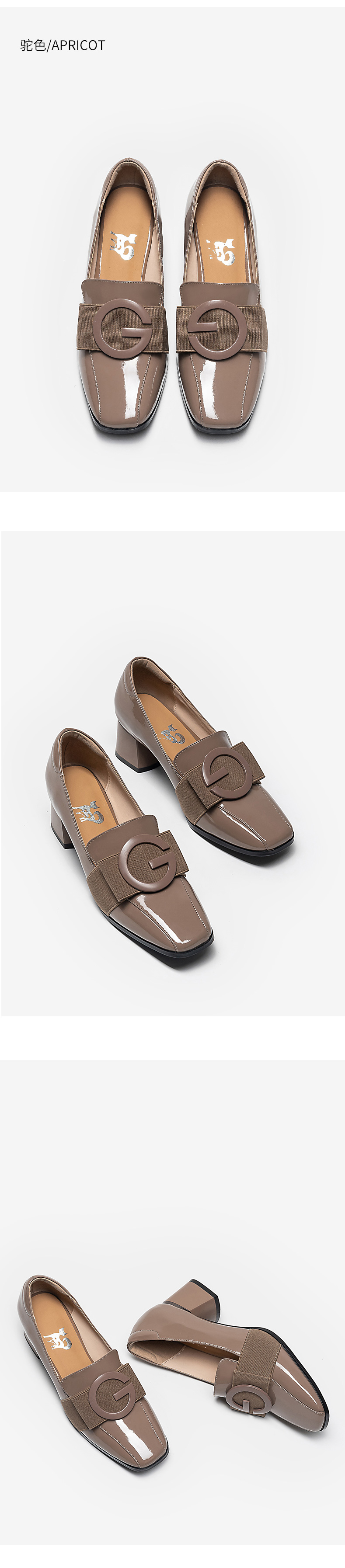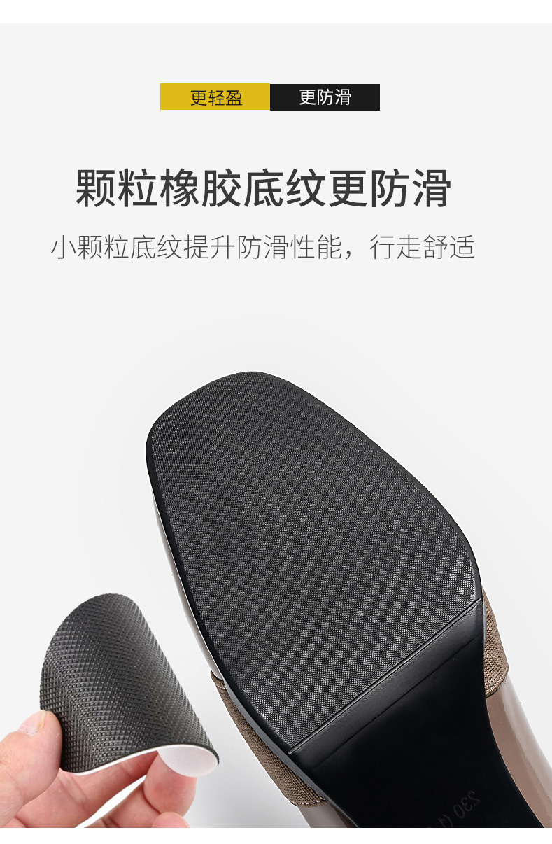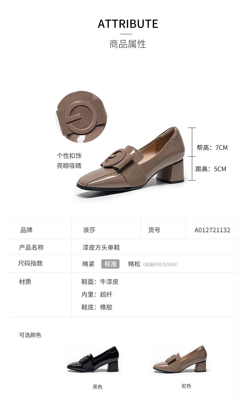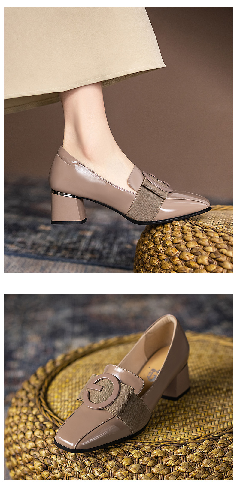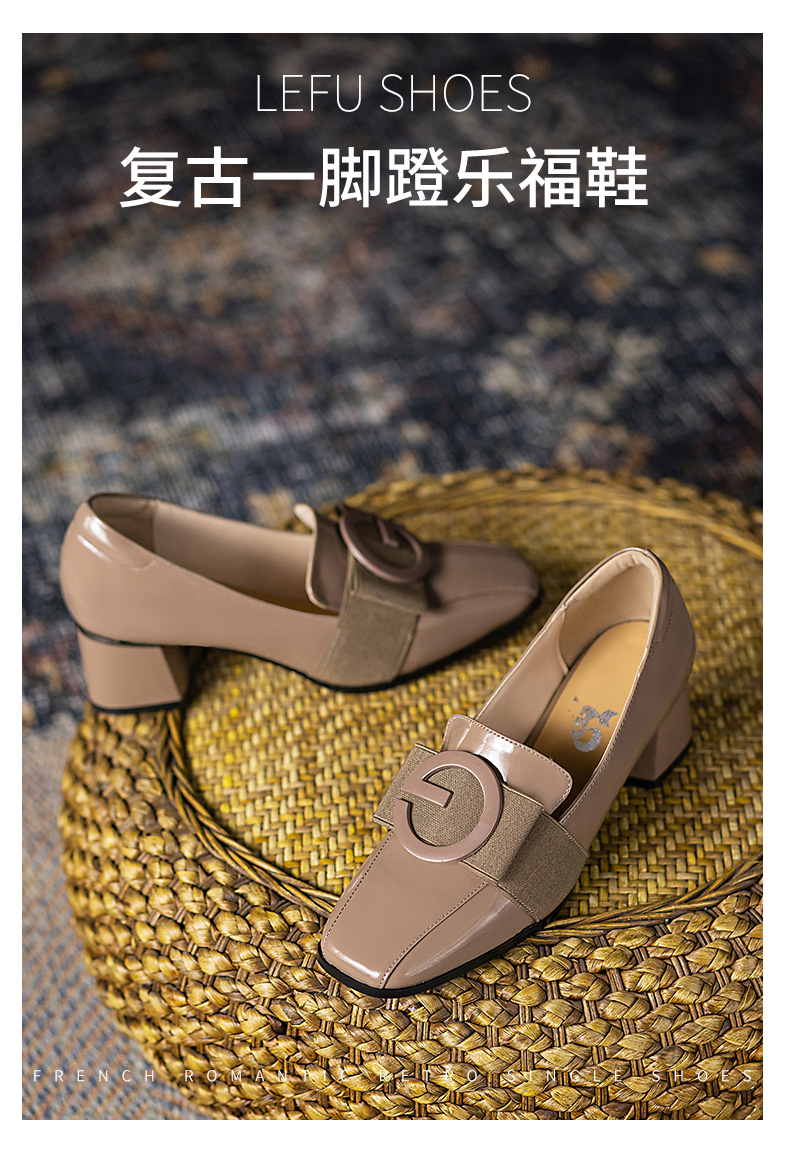浪莎粗跟單鞋女2021早春女鞋一腳蹬小皮鞋中跟方頭深口真皮樂(lè)福鞋