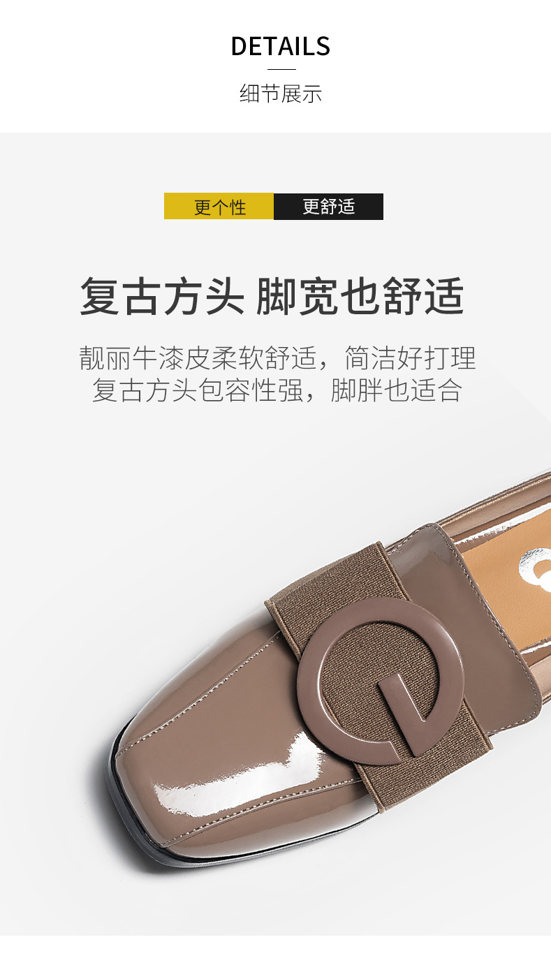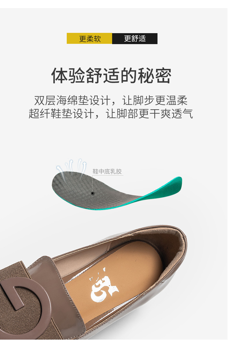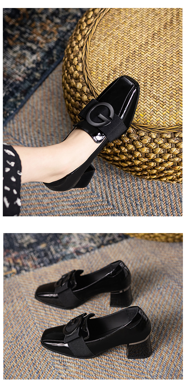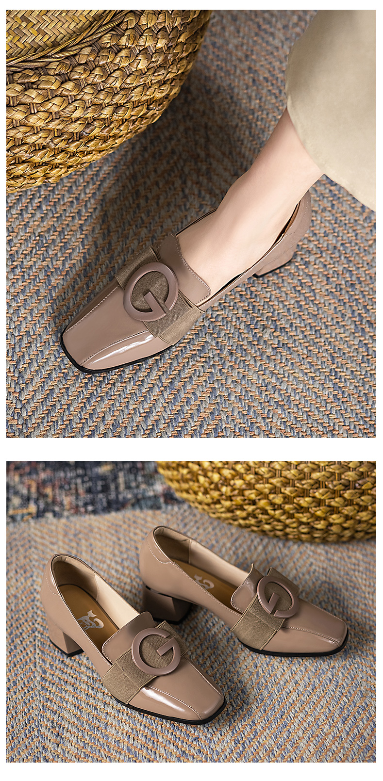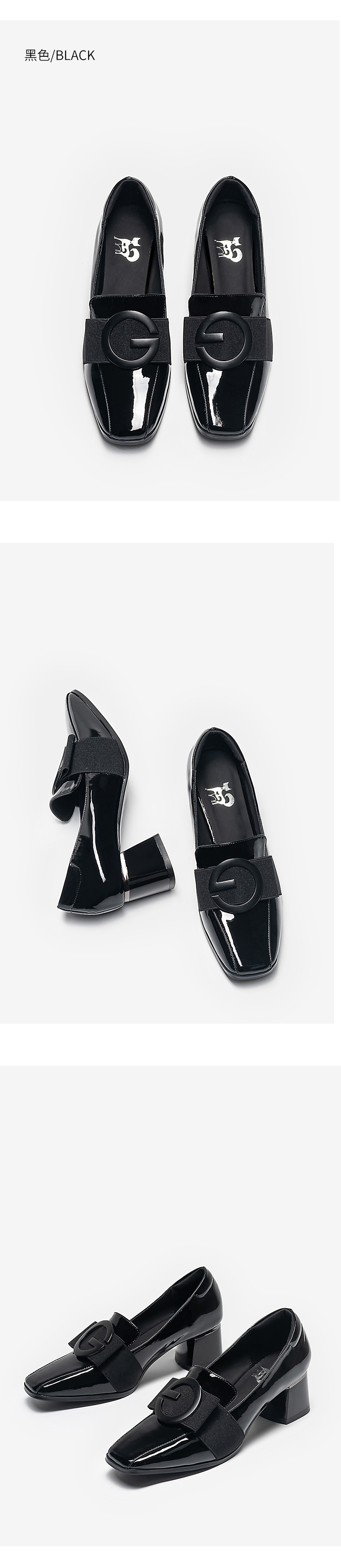 浪莎粗跟單鞋女2021早春女鞋一腳蹬小皮鞋中跟方頭深口真皮樂(lè)福鞋