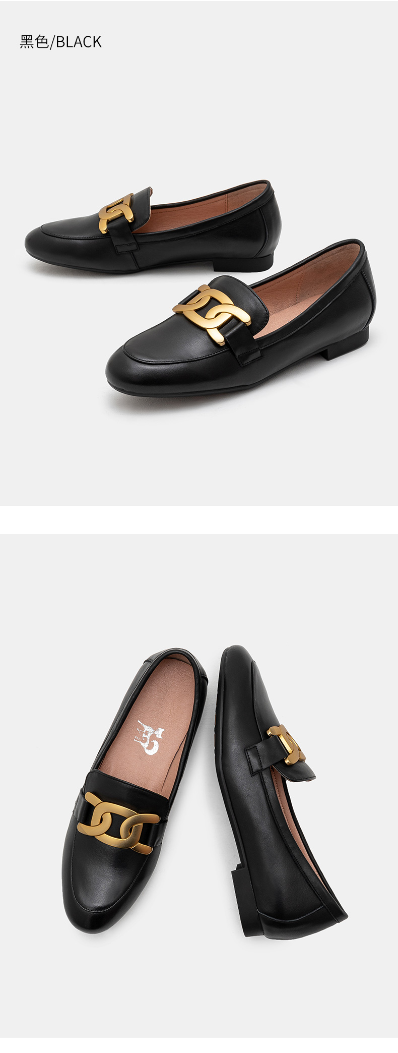 樂福鞋女真皮2021爆款鞋子春英倫風圓頭單鞋一腳蹬黑色平底小皮鞋
