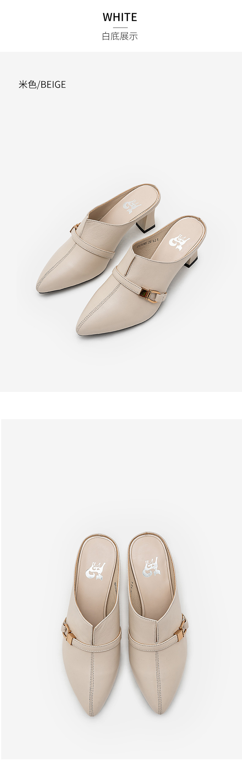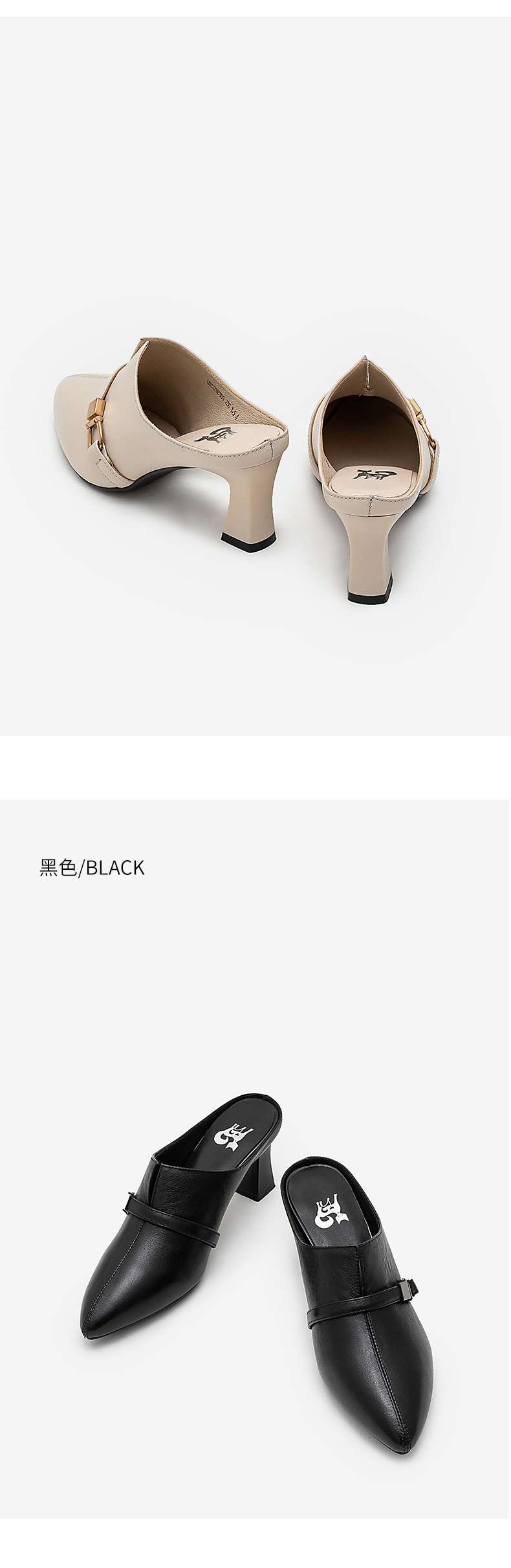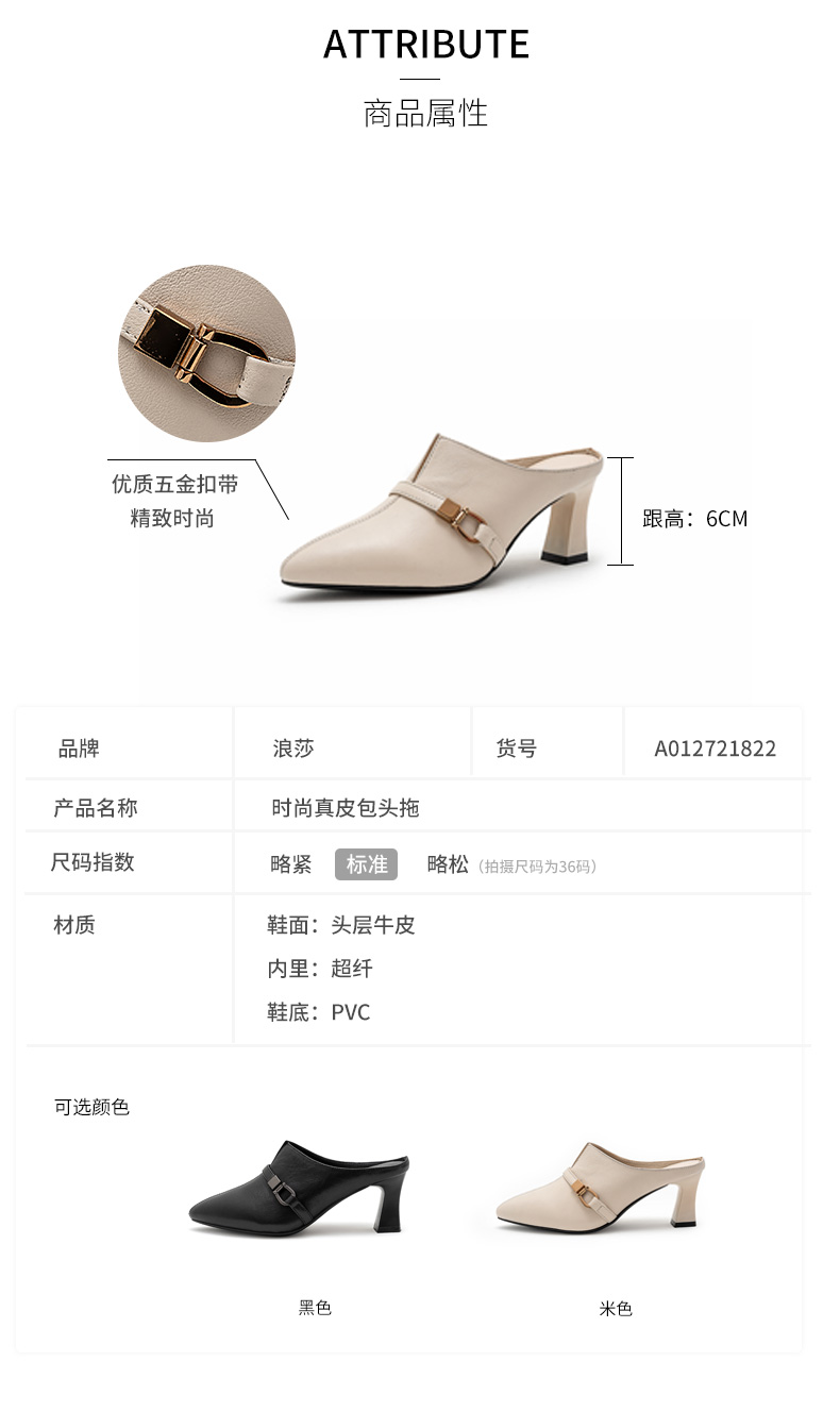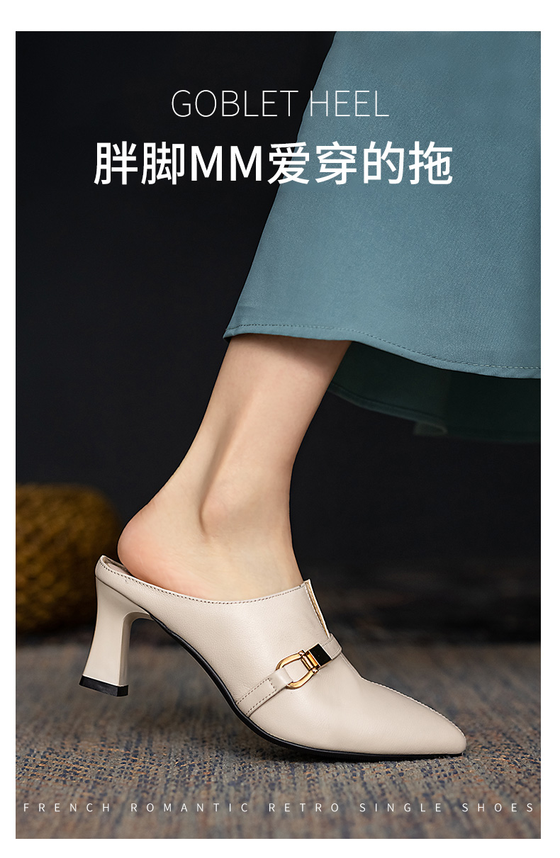 浪莎包頭半拖鞋女夏外穿2021年新款穆勒懶人高跟真皮粗跟尖頭涼拖
