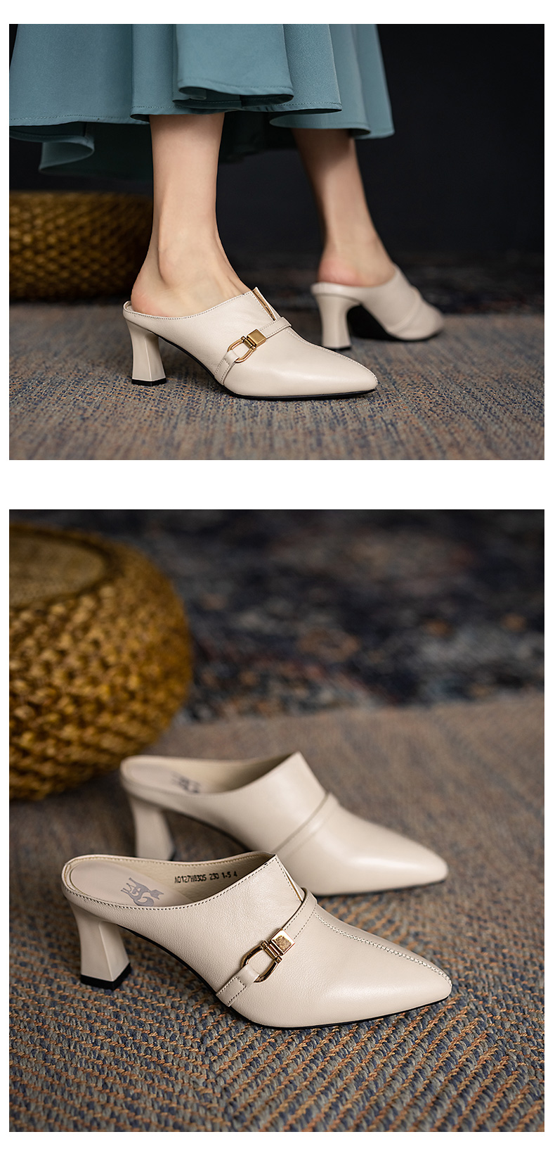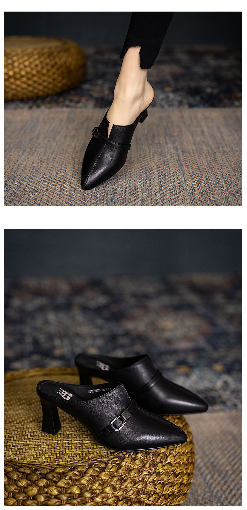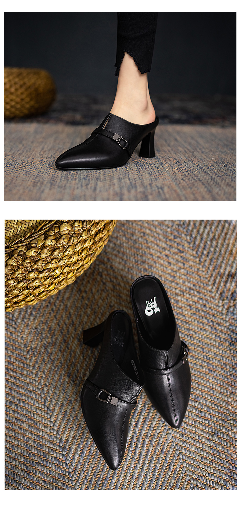 浪莎包頭半拖鞋女夏外穿2021年新款穆勒懶人高跟真皮粗跟尖頭涼拖