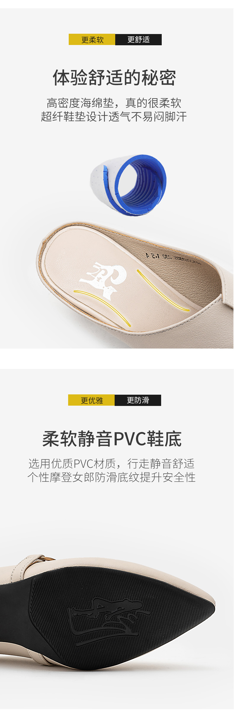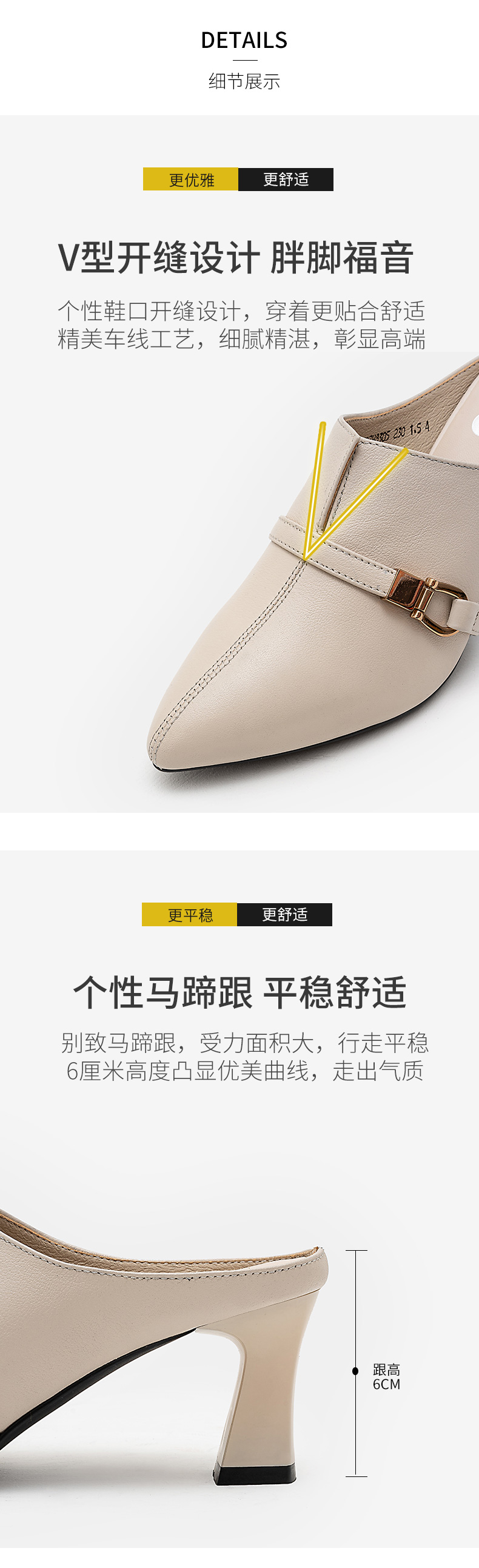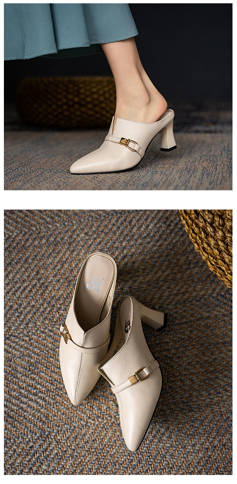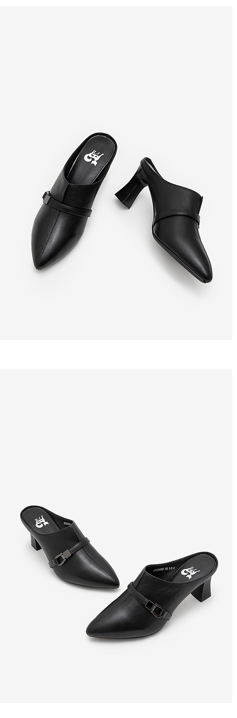 浪莎包頭半拖鞋女夏外穿2021年新款穆勒懶人高跟真皮粗跟尖頭涼拖
