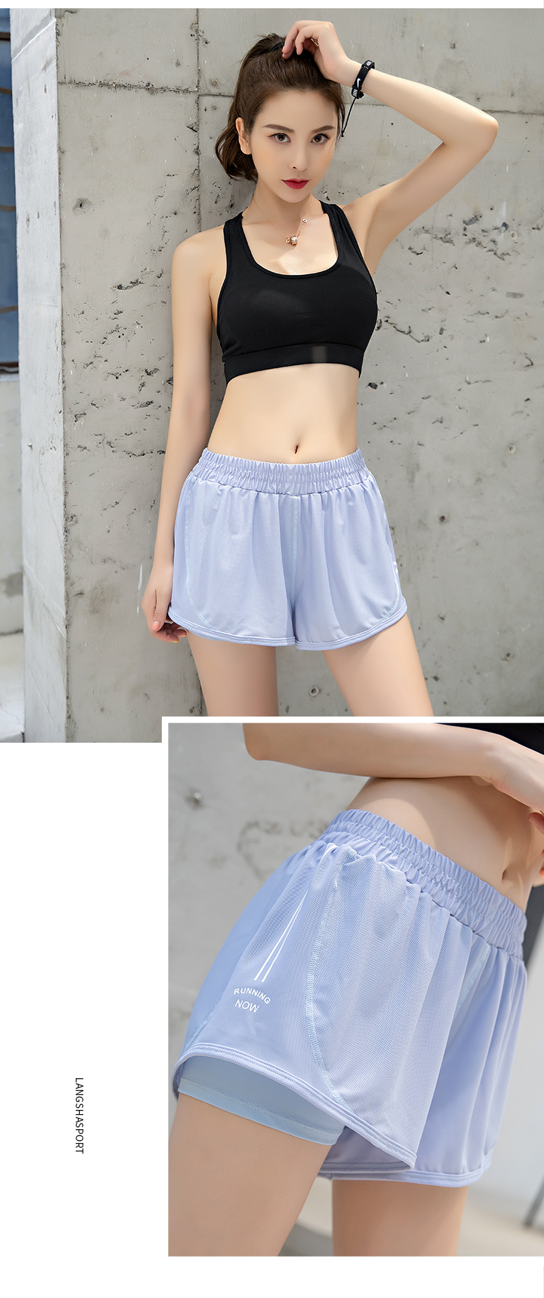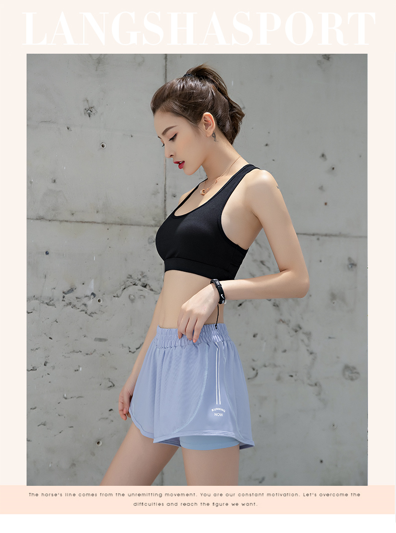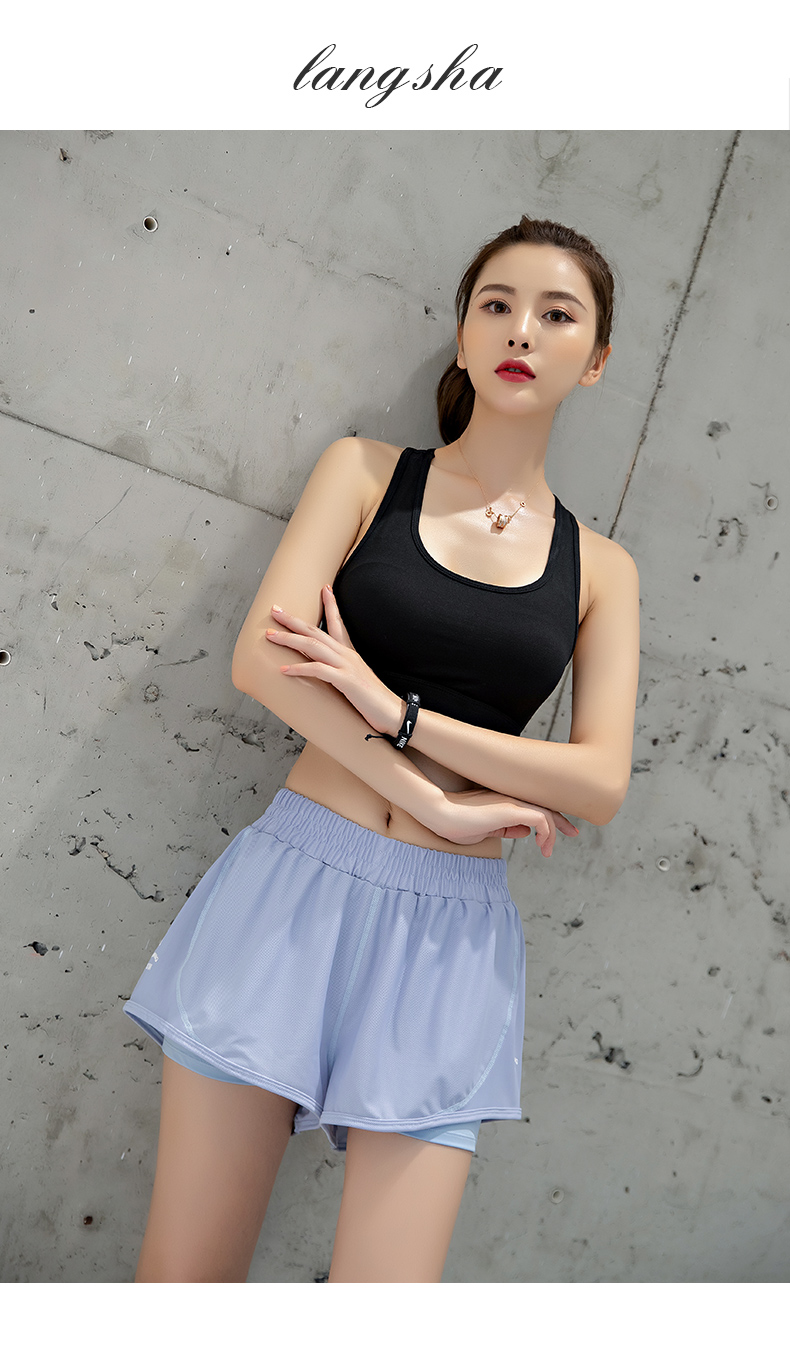 浪莎運動短褲女薄款寬松速干翹臀跑步訓練網紗瑜伽防走光健身短褲