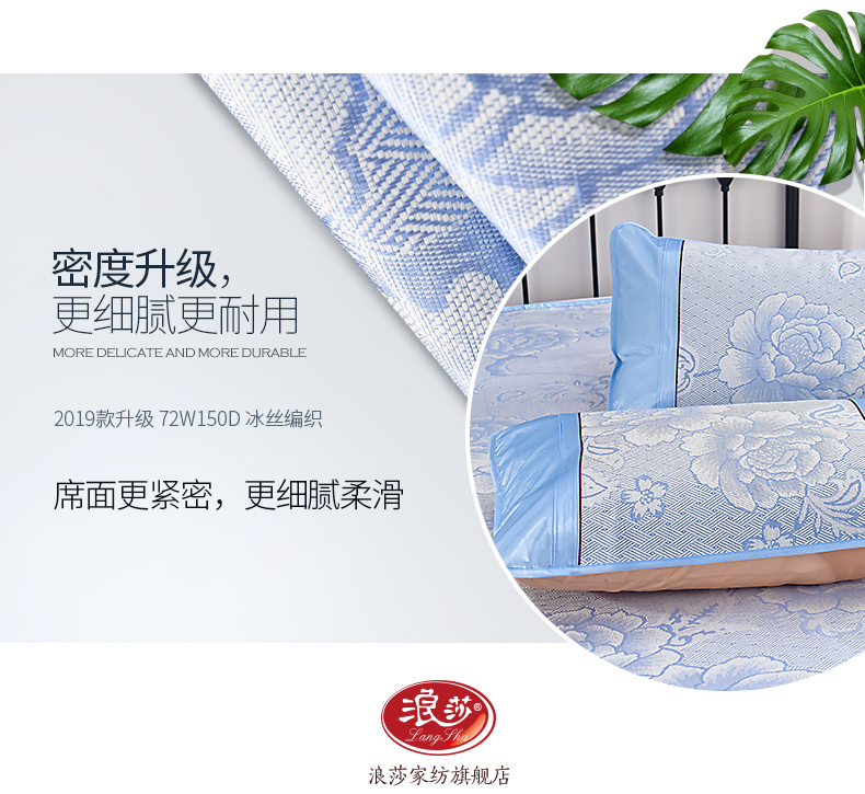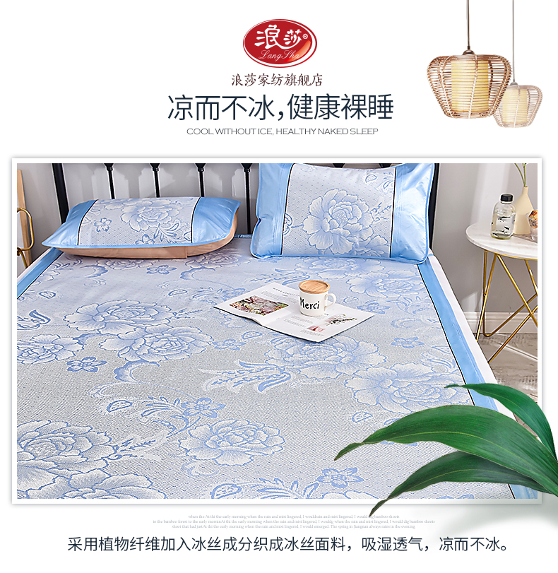 浪莎涼席冰絲席三件套1.8m床夏季1.5米折疊雙單人1.2學(xué)生宿舍席子