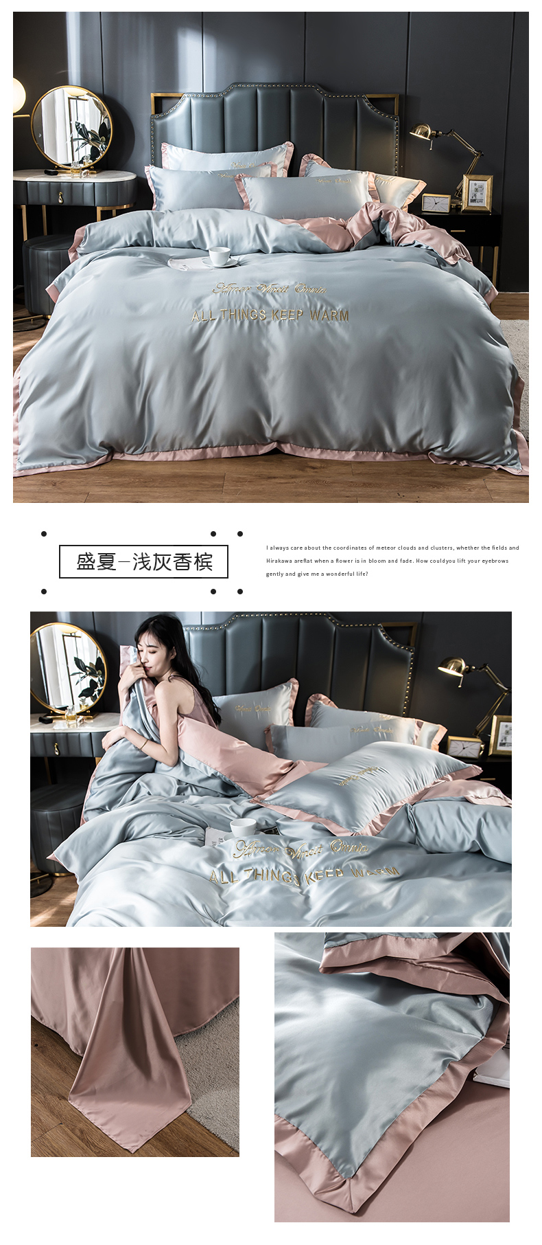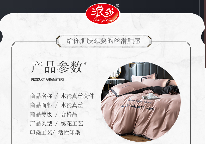 浪莎四件套水洗真絲北歐風被套床笠床單裸睡冰絲春夏秋季床上用品