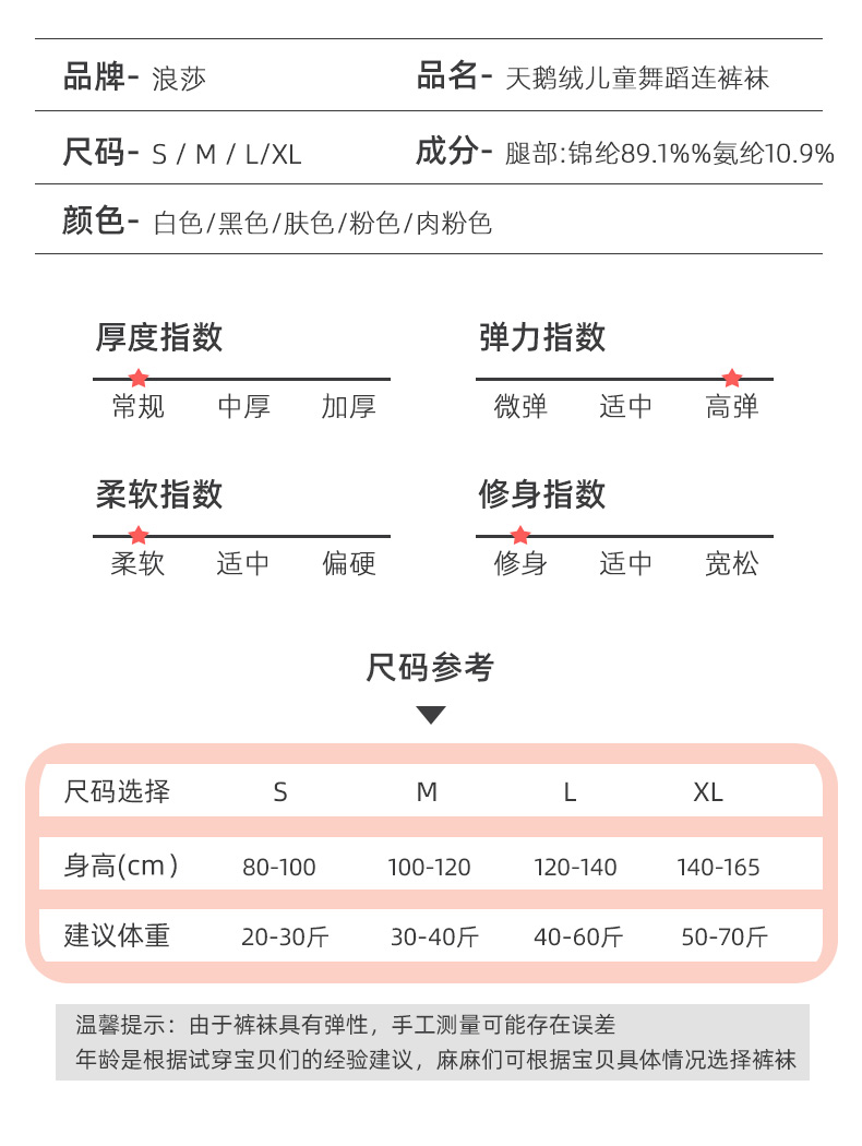 浪莎兒童連褲襪絲襪女童薄款專用舞蹈襪春夏季寶寶白色打底襪