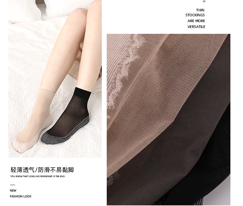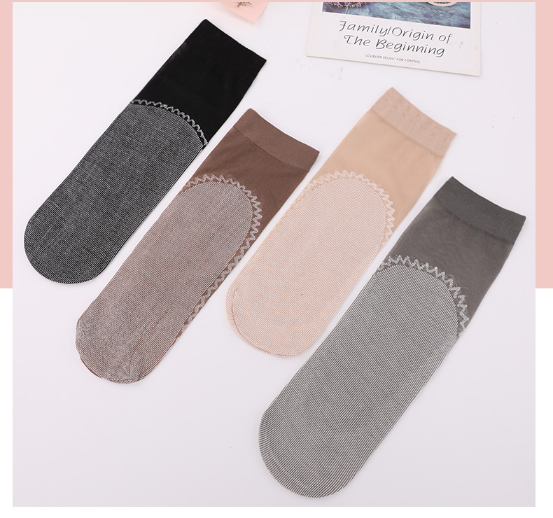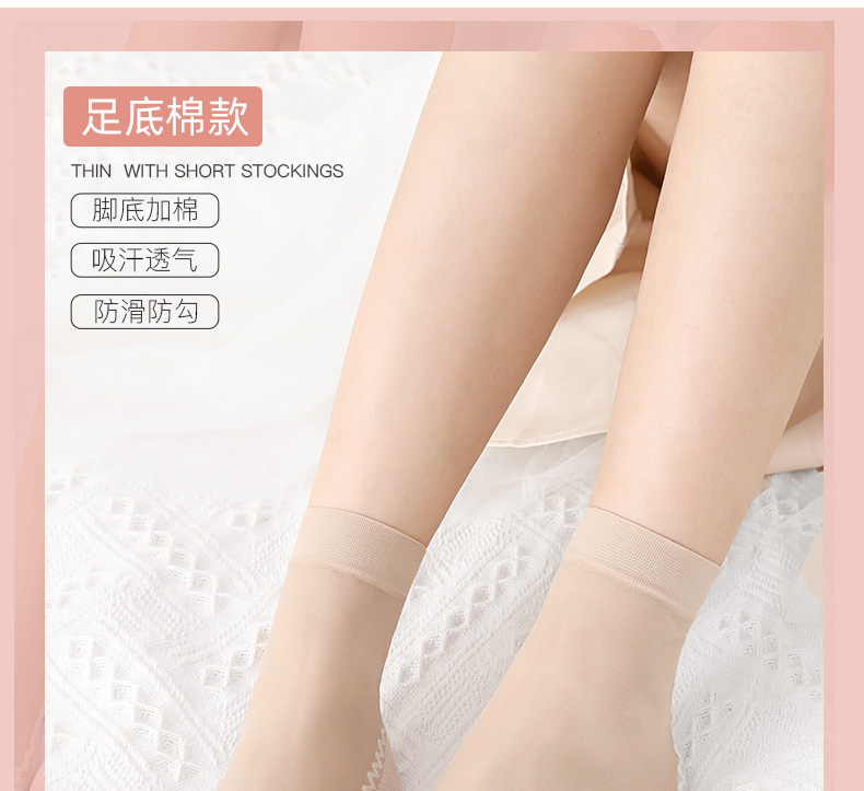 浪莎絲襪女薄款春秋水晶絲短襪耐磨防勾絲夏季黑肉色棉底襪子中筒