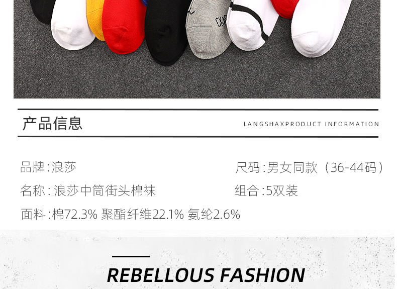 浪莎襪子男中筒襪歐美ins潮春夏季防臭女長筒襪籃球高幫運動棉襪