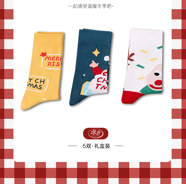 浪莎圣誕襪子女中筒襪秋冬季可愛本命年紅襪子圣誕節(jié)禮盒加厚棉襪