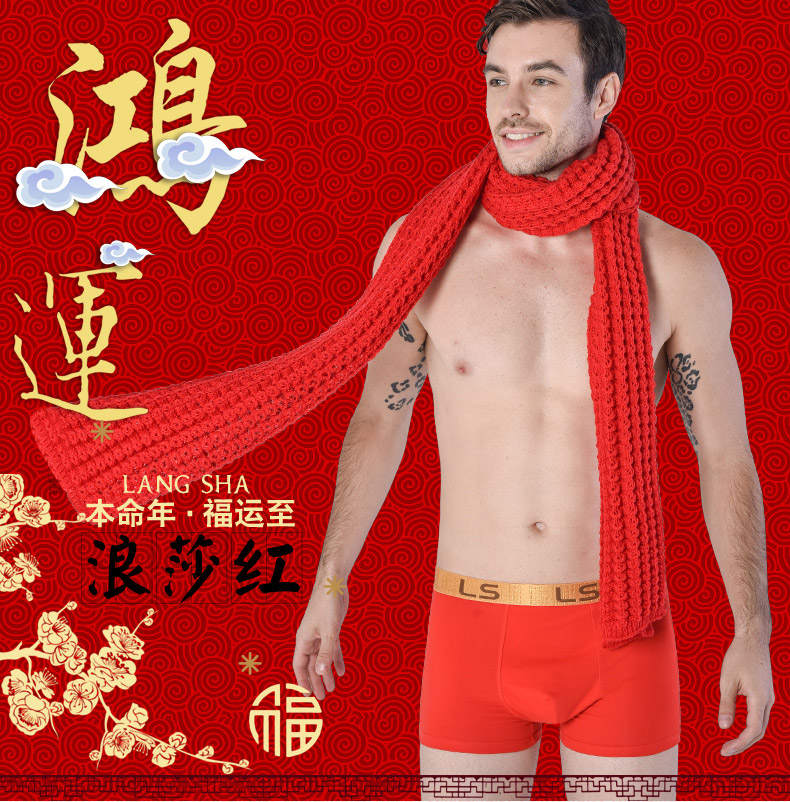 浪莎男士內褲男純棉本命年牛四角褲紅色平角褲結婚禮物男式短褲頭